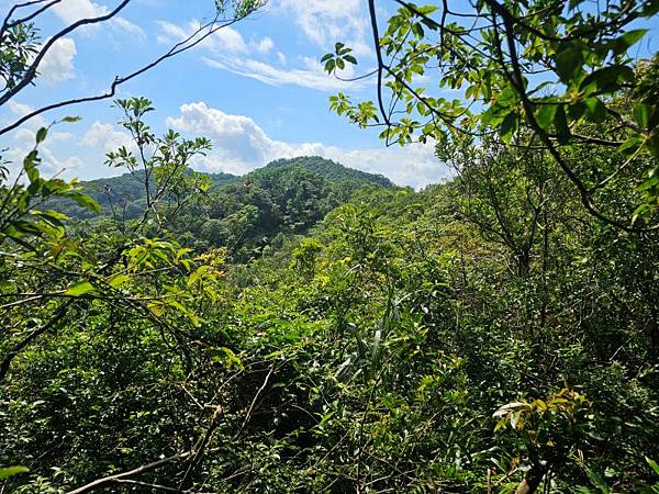 ↑和尚頭山,無標示,無基石,視野可看到五堵。原路回,往大尖山。