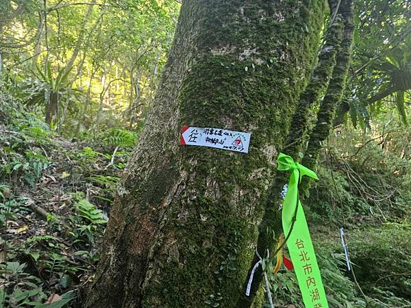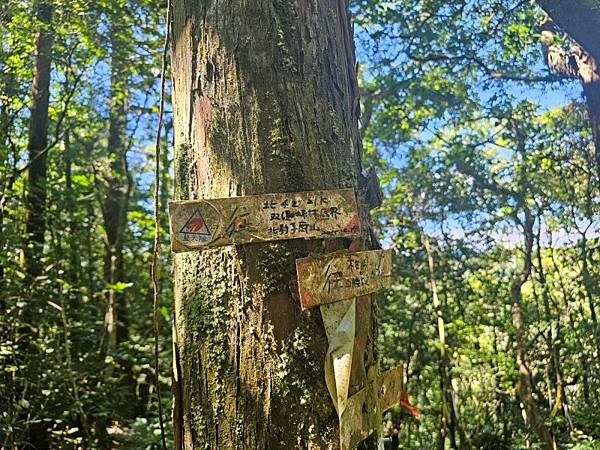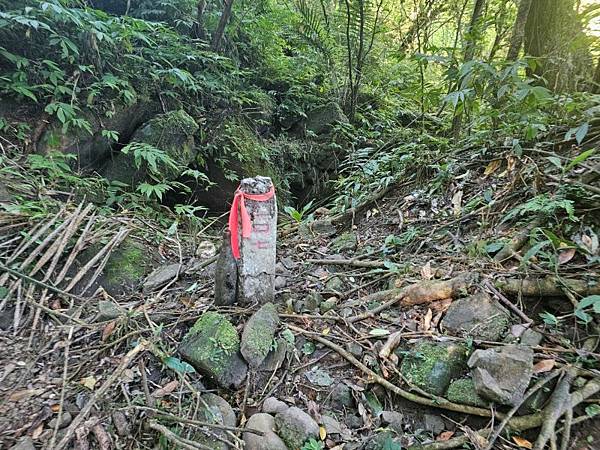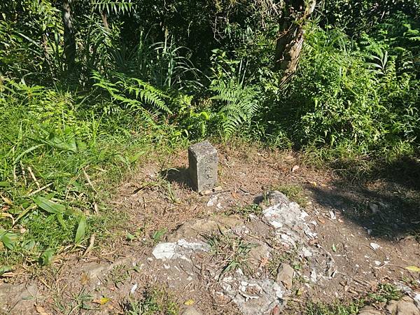 ↑09:17登頂柑腳山,高615公尺,二等三角點,編號1150,另有一顆雙溪水源10號基石。回叉路口,往黃德公。