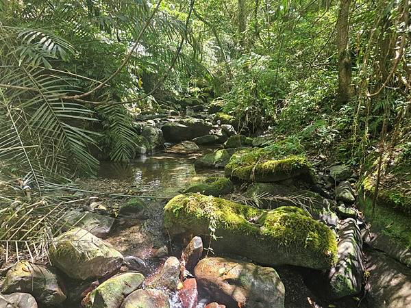 ↑12:11過溪,許多山友在溪床休息,早上遇到的藍天隊也在其中,然後問我怎麼現在還在這裡,我說去爬豹子廚。山友休息剛好是叉路口,通往游家古厝(左線)。