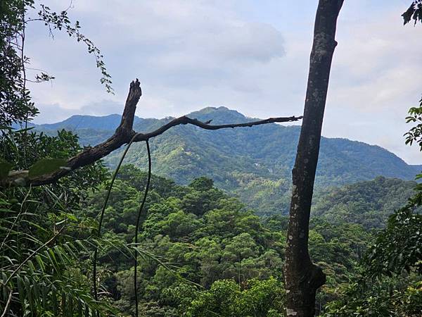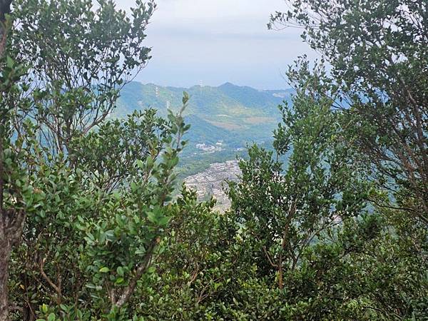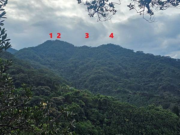 ↑11:44登頂鳥頭尖,高520公尺,望向天上山及溪南尖。