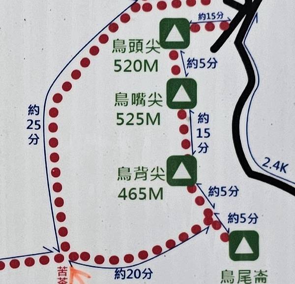 鳥嘴有四秀鳥嘴尖、鳥頭尖、鳥背尖、鳥尾崙,鳥頭尖、鳥背尖、鳥尾崙應該是後來有人命名,因為每座幾乎相鄰,有收集山頭的人,這裡CP值很高,一下收集4座。