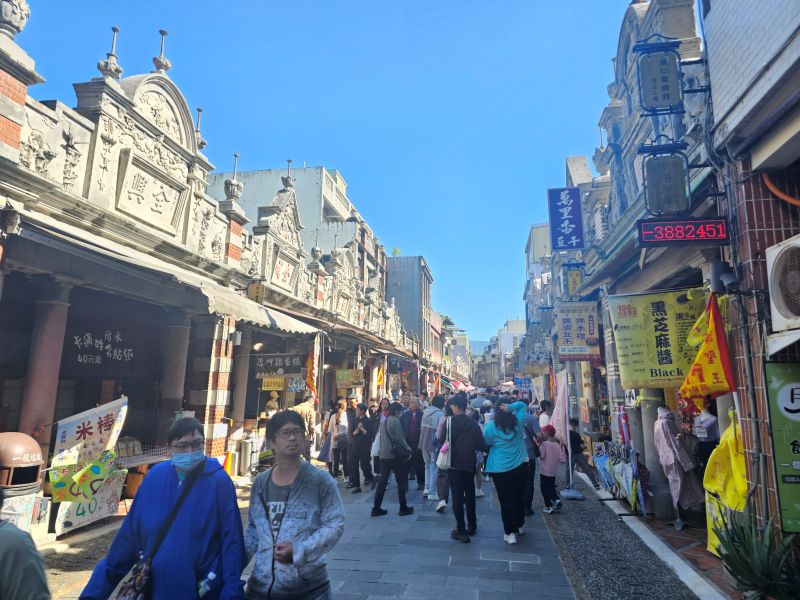 進入老街,在金字塔鹹湯圓午餐,吃了三角湯圓75元,什錦麵80元,豆干1份50元,米大腸大份2條130元。