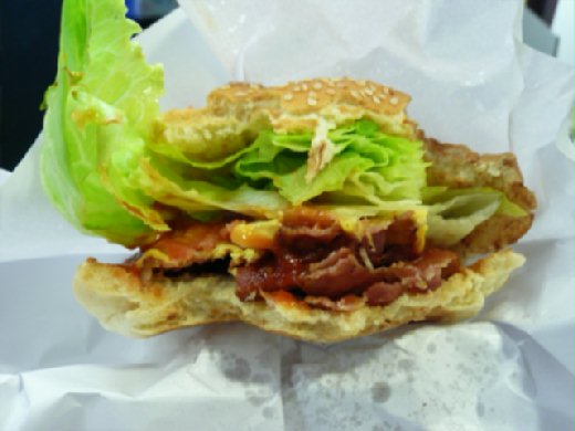 補充資料:常常會聽到有客人說:「我要一個B.L.T.」,所謂的B.L.T.是「bacon+lettuce+tomato」(培根+生菜+番茄),也算是一種基本款又便宜實惠的漢堡囉!(這是老闆告訴俺滴!)