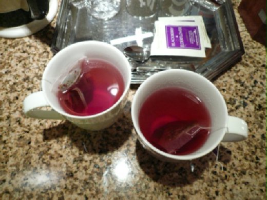 酒紅的色澤,逐漸在原本透明的熱開水中暈染散開,
