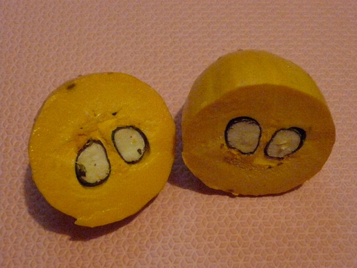 幾天之後,黃黃的水果變軟了,像是熟透了的南瓜,味道一樣很嚇人!