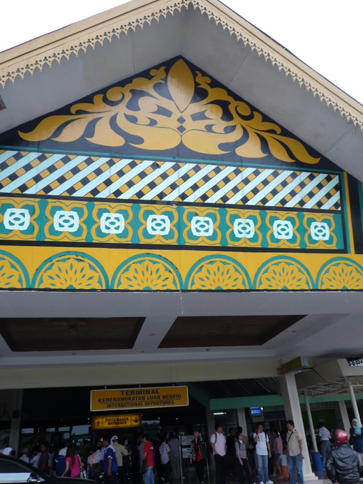 機場建築的外觀用各種顏色的磁磚貼出熱帶國家的特有的圖騰,