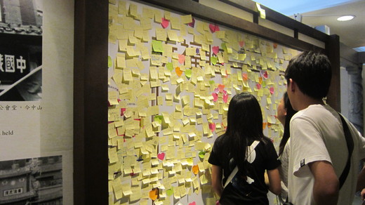 国父纪念馆的留言墙上粘了好多便利贴,贴的最多的是盼望祖国统一,回归,两岸团结,我爱台湾等等,进来时并未在意,出门时感慨良多。台湾人的自大表现在他们并不介意有没有根,目光短浅的只认为日本好,却把祖国母亲不当回事。可是妈妈什么时候跟不懂事的孩子计较过呢?有的只是爱。