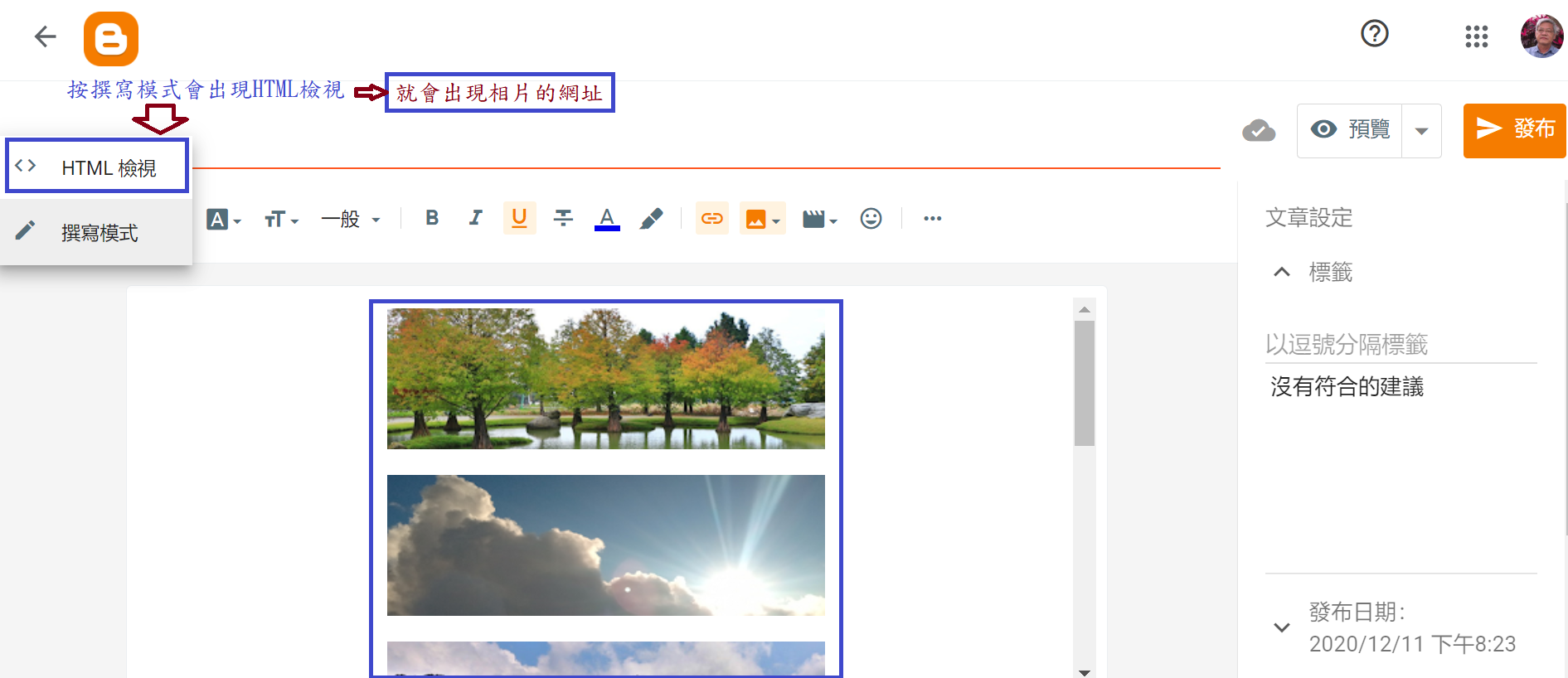 2.上面的部落格是原來內建的照片,請大家按下開關,看一下照片輪播,一般人都會把