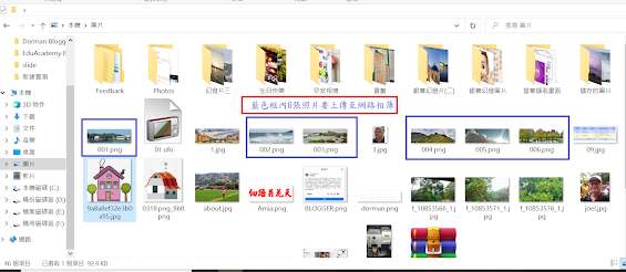 黃色框內是讓你描述相片名稱或說明,下面那兩行英文字,可以在HTML裡把它刪去,是讓你用三句話描述照片的內容。