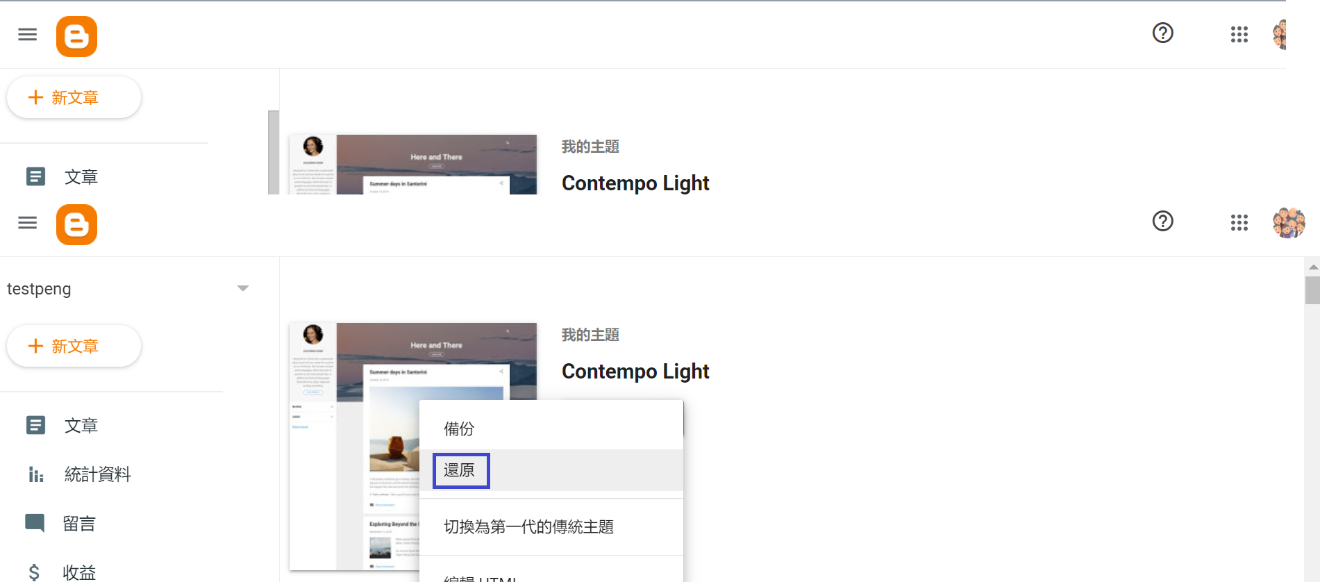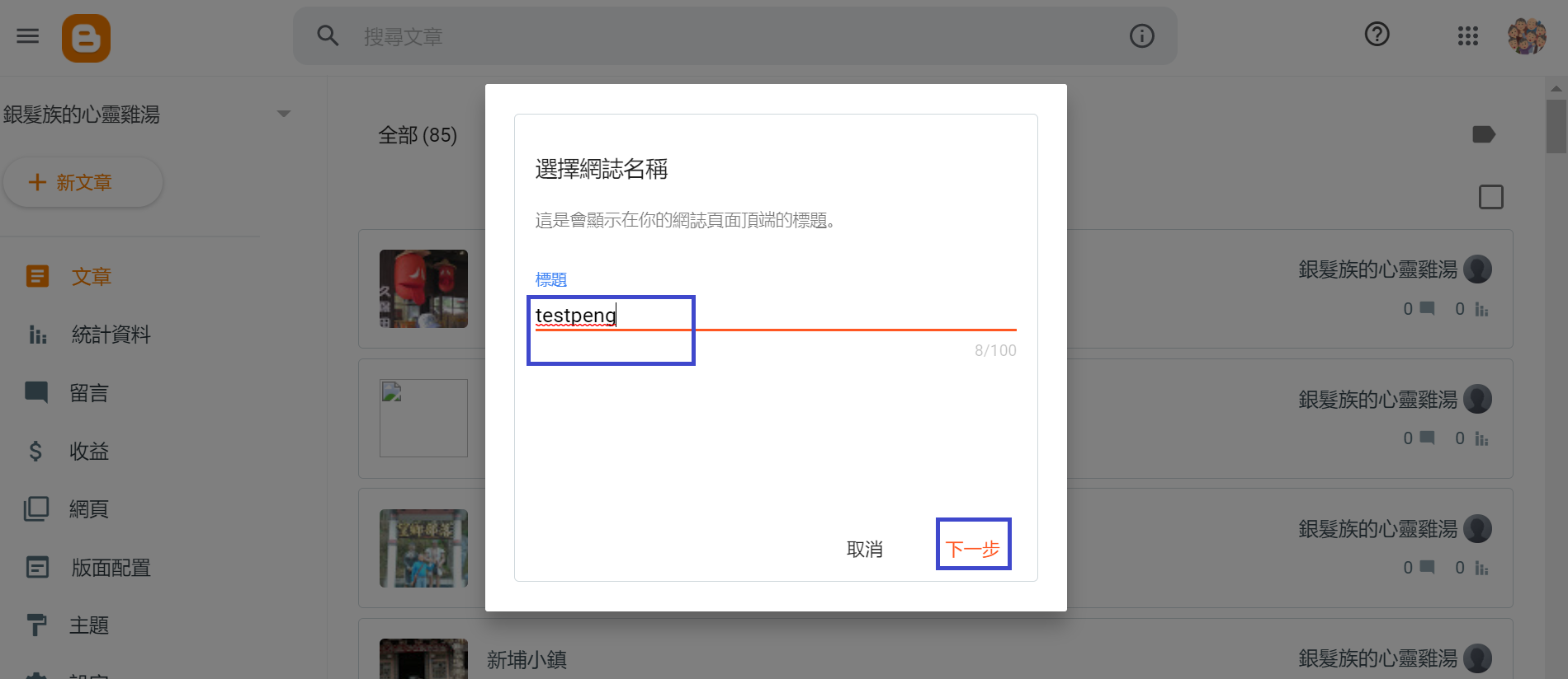 (05)這時你的網址就是testpeng.blogspot.com 按下儲存後,會出現如(圖6)