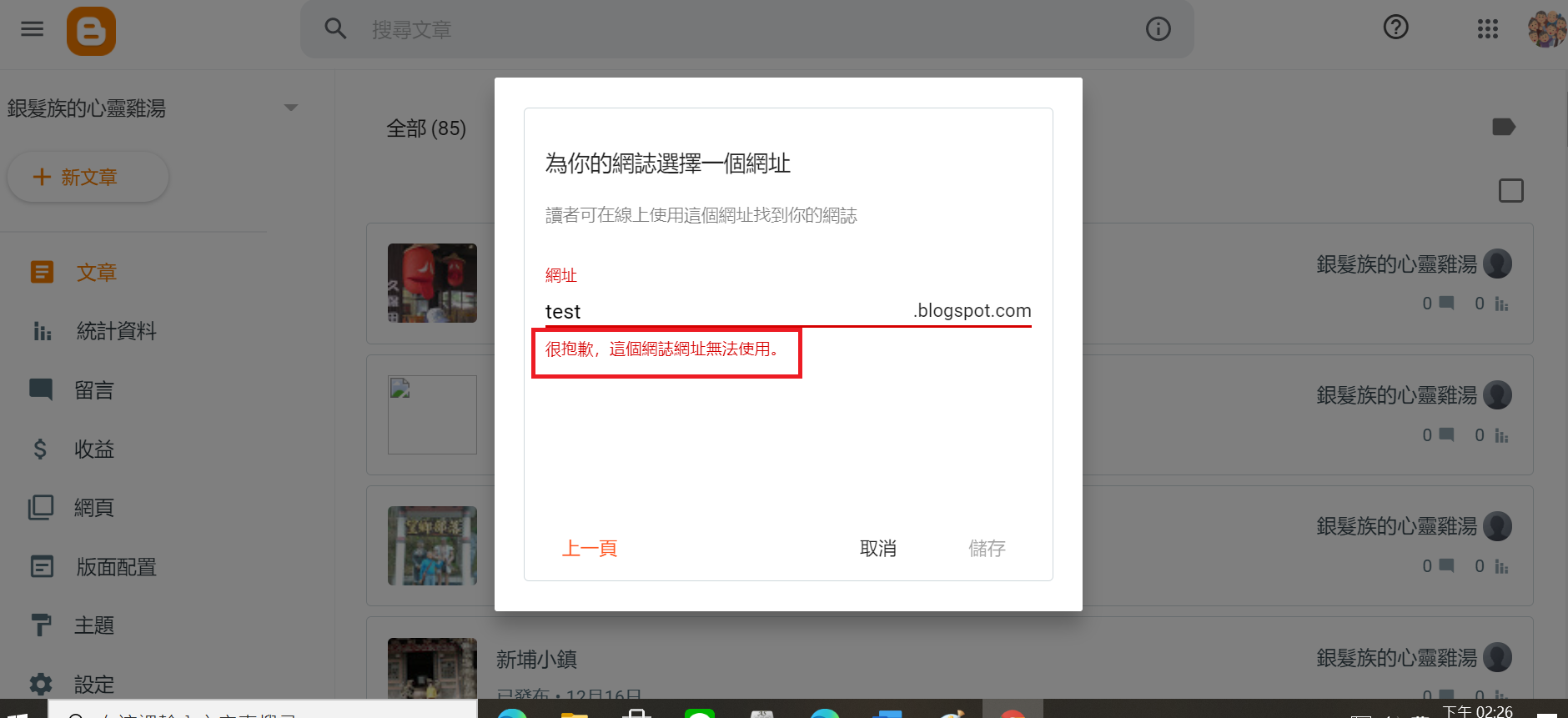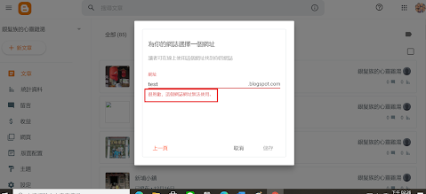 (04)為你的網誌選擇網址,要用英文小寫,如果跟別人重複,就會出現「很抱歉,這個網址無法使用,如(圖4)。這時你就要修改,沒人使用過的就會OK,如(圖5)。