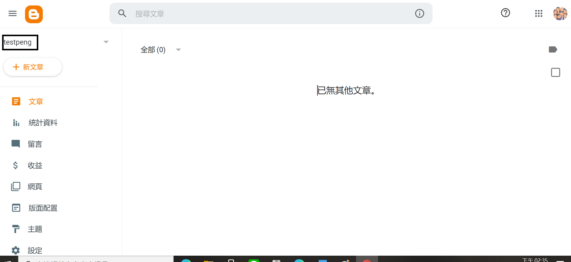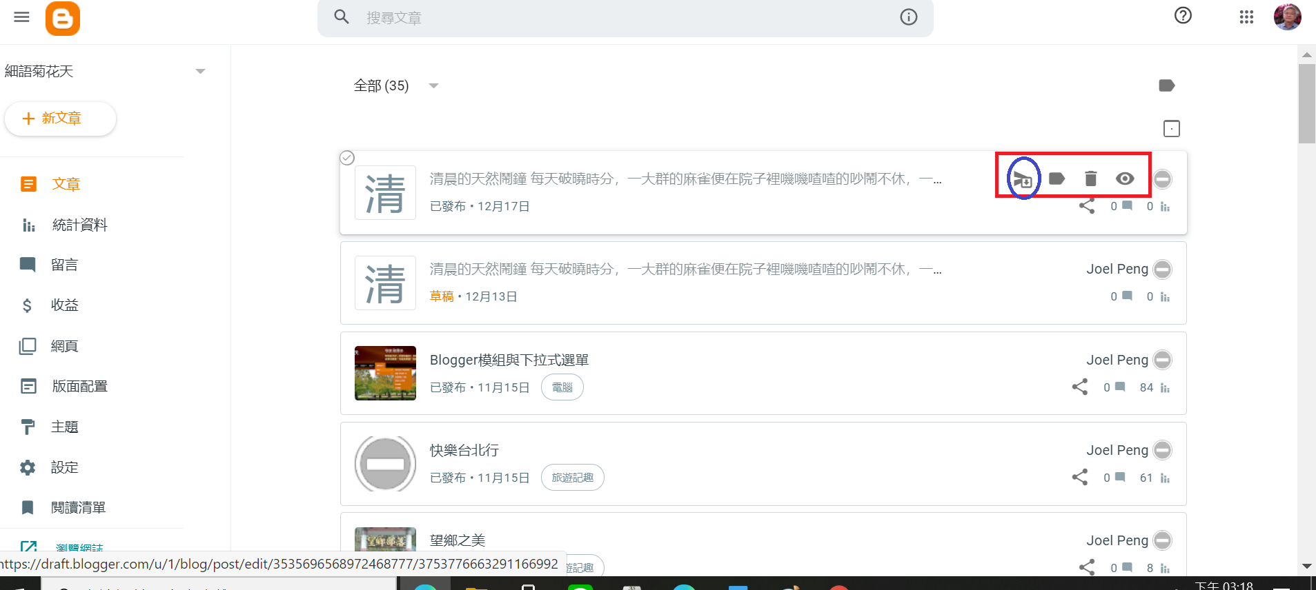 (17)出現測試文章已發布(上圖藍色框表示已發布)滑鼠一過去才會出現。
