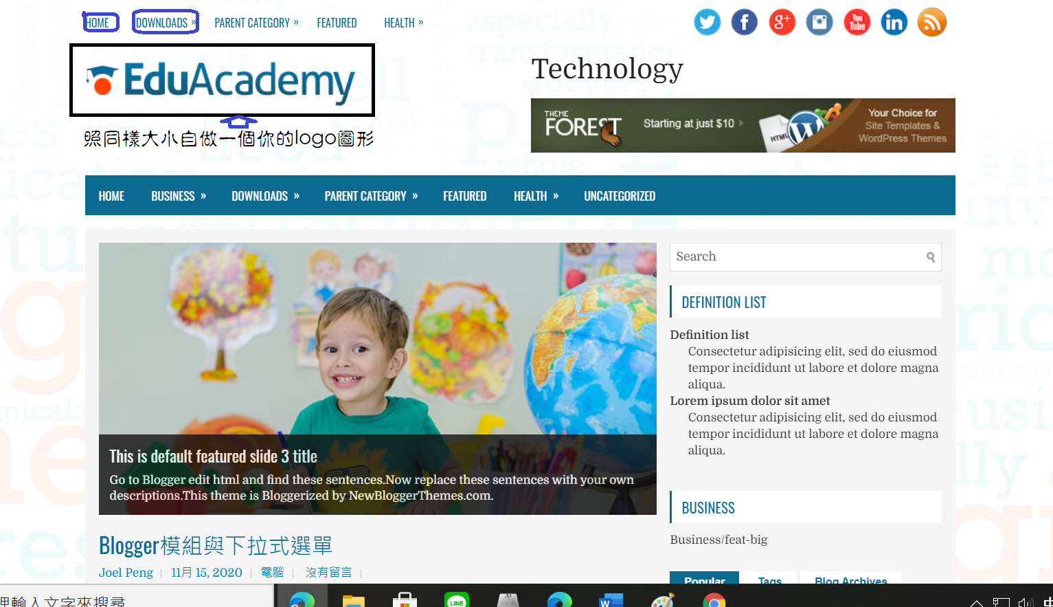(19)再按下左側欄位最底下的「瀏覽網誌」,就會看到上圖19,上面的Logo你可以依照原大小自製一個屬於你的專用Logo,如果你是用文字(如本網站),也是要存成圖檔上傳。