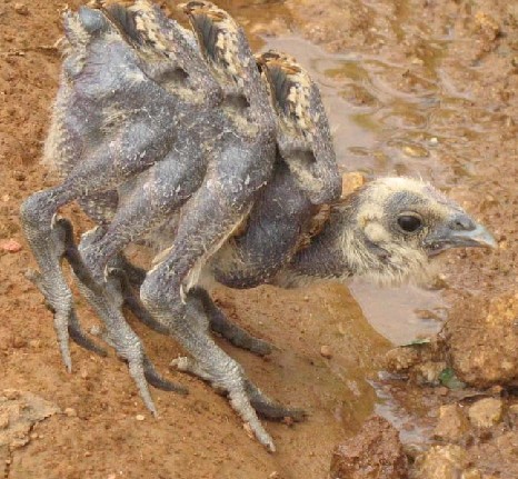 現在已經能催生到6條雞腿6只翅膀 了,但是由於是針對中國消費者——世界上最盲目無知的消費者,所以只是粗放式激素配方餵養,所以往往有一隻雞身上長有3條腿3只翅膀,或者4 只,5只,6只等等不一而足。
