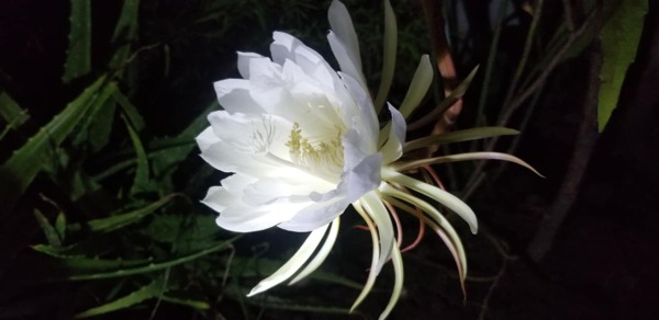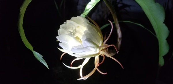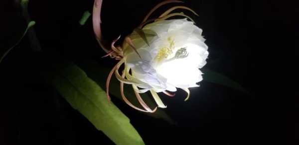 這次觀賞曇花綻放,又體悟了一點人生感悟,看著那根在整個花期中扮演著「為人做嫁衣」的空心莖,感覺不管是人還有植物,來人間一趟,老天都已安排好了角色,大家只需勤勤懇懇地扮演好自己的角色。