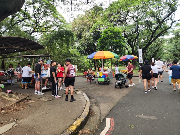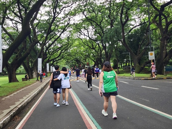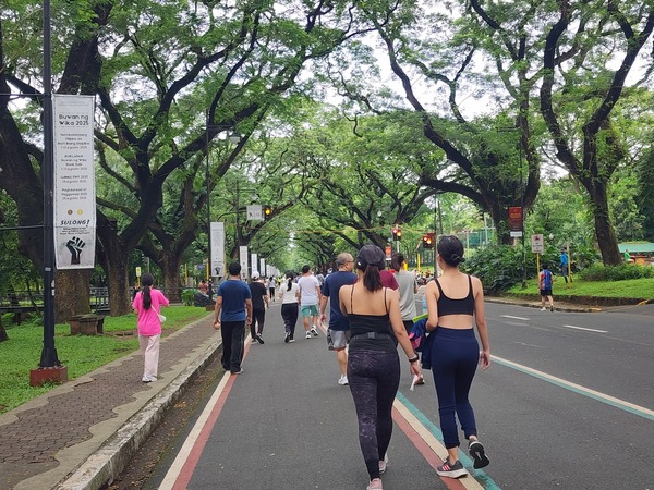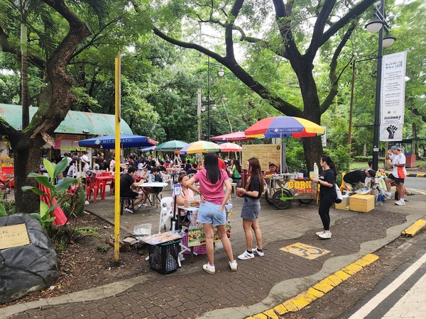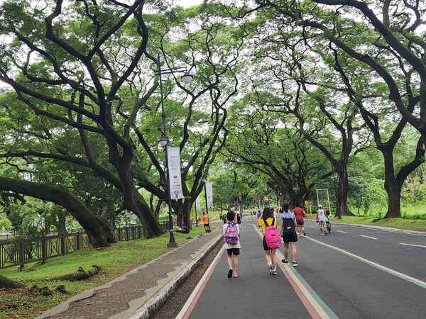 抵達時環校大道已是人流湧動。馬尼拉的雨季讓草木沐浴得青翠欲滴,茂盛的枝葉交織將大道化作一條綠色林蔭長廊,成了鬧市中一座現成的天然氧吧,放眼四望盡是養眼的綠,教人心曠神怡。