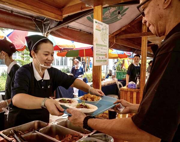 而原本只是想送給慈青和年輕職工,可攤位邊的義工與志工也紛紛湊過來,也就一個個送出。