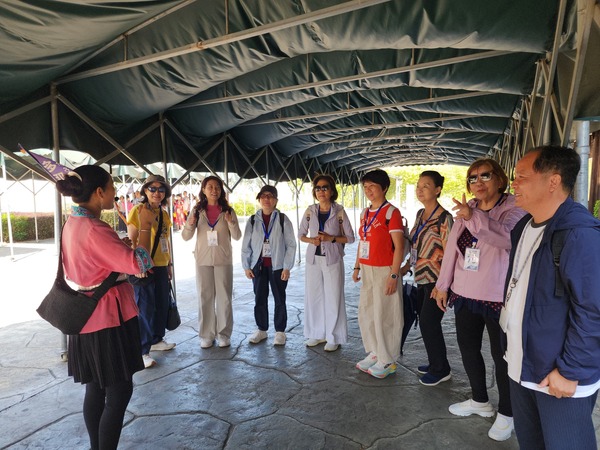 我們團的這位女解說員非常善於表達,聲音柔和,給人親切感。天氣炎熱,她邀請大家進屋休息時說:「請大家進家裡坐坐」,而不是說「進我家坐坐」。