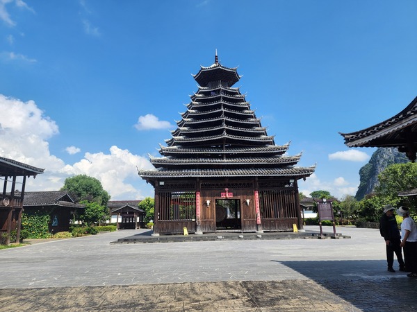 桂林山水清麗,天空湛藍,白雲悠悠,空氣清新。或許正因如此,侗族人的平均壽命可達九十多歲。若見到哪戶人家大門上方掛有牛頭,便表示這家有位百歲老人。