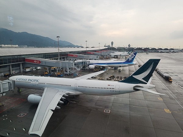 走去機場觀景台逛逛,見降落的飛機像溫馴巨鳥,沿著地面T字線慢慢滑入。前輪抵達T字頂端,地勤迅速推入輪擋,空橋緩緩吻上機身。這邊厢旅客還沒下機,那邊厢行李拖車已開始卸貨,效率棒棒的。