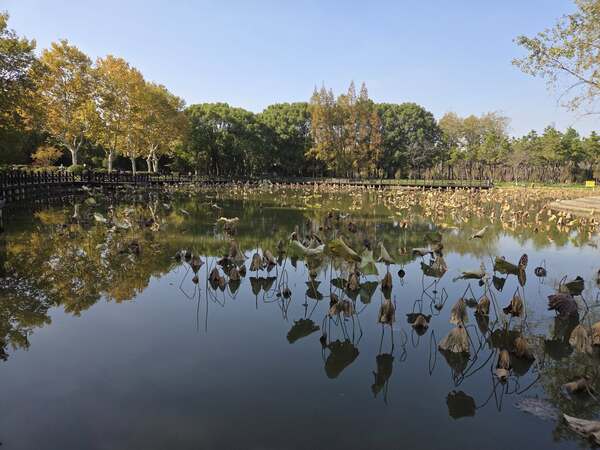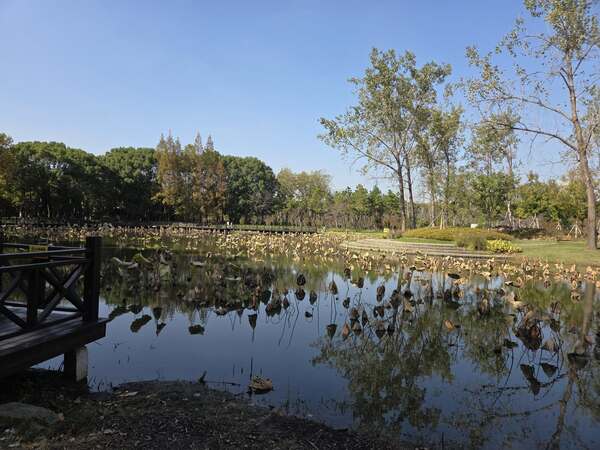 在上海的最後一日,氣溫二十度,對於來自熱帶島國的人而言,格外享受這種天然的涼爽。下午四點就要搭機返岷,趁著清晨,信步走進酒店對面的「世紀公園」。公園實在廣闊,總面積一百四十公頃,有大片草坪、森林、湖泊。