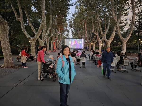 意外的收獲是,有一晚到襄陽南路,誤打誤撞,竟然在公園大樹下,見到露天電影正在上演,放映由徐崢和馬伊琍主演的《愛情神話》。