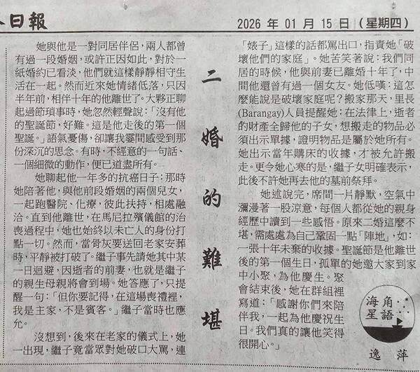 直到他離世,在馬尼拉殯儀館的治喪過程中,她也始終以未亡人的身分打點一切。