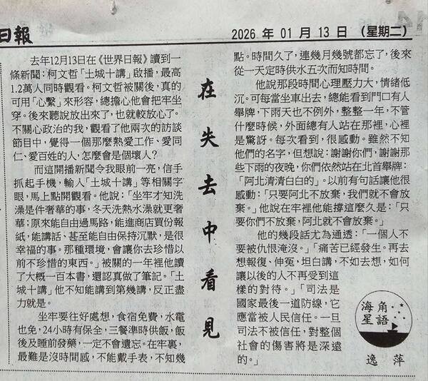 《在失去中看見》刊于 01-13-2026菲律賓《世界日报》