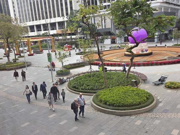 先談美食店——這次下榻於尖沙咀的酒店,周邊一棟棟樓宇酒店排列,中間卻豁然空出一大片廣場。從酒店後門步出,便是這空曠開揚之地。