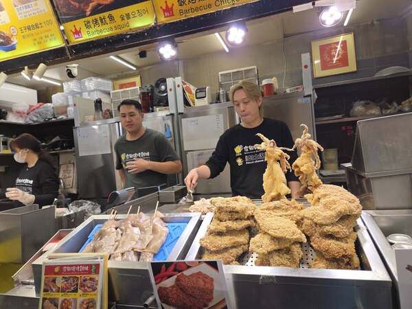 下樓第一餐,就被五花八門的小吃店吸引了。鹽酥雞店前排起長龍,玻璃屋裏的小籠包店也是人氣旺盛,現包現蒸,熱騰騰的香氣撲面而來,更別致的特色是,小籠包竟是配一杯杯熱珍珠奶茶售賣,隊伍因此更長。