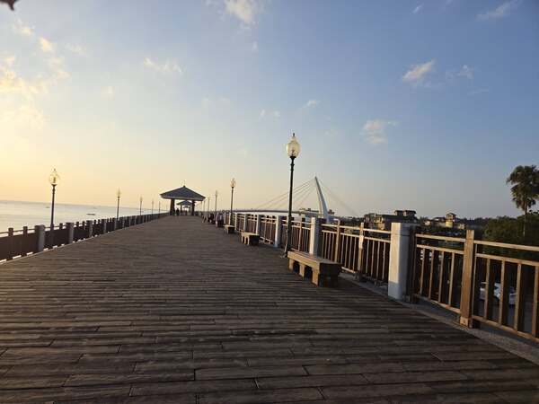 十幾年前那趟淡水漁人碼頭,留下極好的印象。情人橋弧線優美得像一首詩,夕陽把海面染成金橙色,觀音山靜靜躺在那裡,溫柔守護著整片海域。