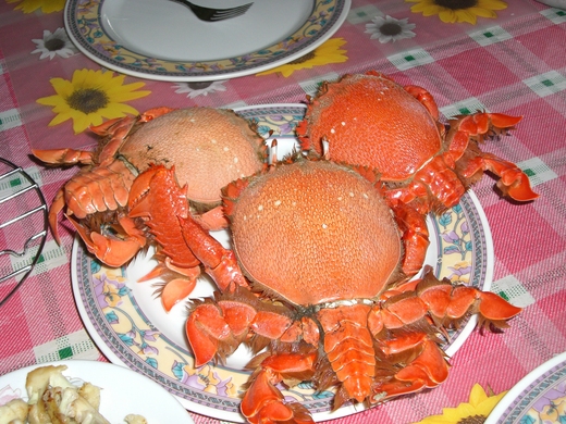 當我興高采烈拿着我的“戰利品”回家後,友人一聽價錢當場傻掉,原來那只螃蟹最多也只需一百塊錢。幾天後,金輝大哥送來一大筐的海螃蟹,每公斤才七十五塊菲幣,呵呵!安慰自己偶爾當一下傻大頭也無妨。