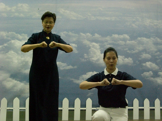 同樣是老師,教學上的老師可以在學生面前天馬行空的發表見解。但手語老師就不同,她要千篇一律、一遍又一遍、一個小時又一個小時、重復著同樣的動作,慢慢地很有耐心地解釋著每一個動作,好讓學員盡快的記住。沒有超凡的耐心和耐力是當不了手語老師的。