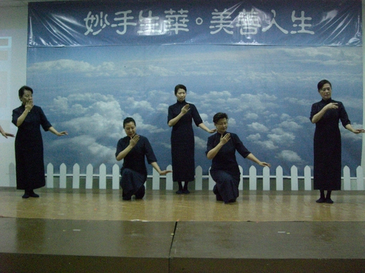私底下我也曾偷偷地觀察老師及她幾個助教的手,手沒什么兩樣啊!可當她們表演時是那么的柔軟、活靈活現、用她們豐富的表情、心靈的智慧、身體語言隨著纖纖巧手傳遞著感人的信息。