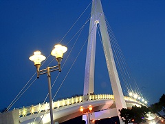 漁人碼頭讓我眼前一亮,最令我贊嘆不已莫過於「情人橋」超現代感的跨港大橋。跨港大橋於2月14日情人節落成啟用,優美的弧形橋身,以及絕佳的觀海視野,是當地最美麗的地標,也是情侶們休憩談心的必遊景點。