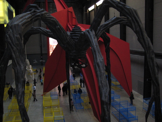 進到里邊的大堂觸目的是一只超大的蜘蛛模型,大到奇可怕,它的腳站在一樓的地上,身體的背部卻碰到二樓的天花板。倫敦人還真會幻想,他們說:“現倫敦幾乎天天下雨,到下世紀倫敦幾乎每小時都在下雨,而且會到處漲水,而蜘蛛就會變成這么的奇大。”呵呵呵……果如那樣?那人類的體高也爆增到一腳就可跨進天堂了。富有的國家便有這好處,有能力有資金有空間讓他們的子民這樣憑空的超級幻想。