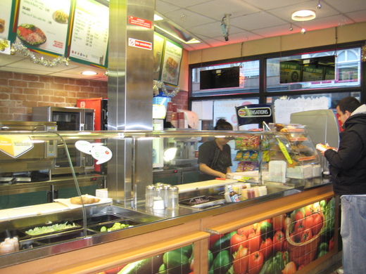 到倫敦的第二天,晚餐在一間叫【EAT】餐館里就餐,又是挑了一個法國式長長圓圓的雞肉三文治麵包(我對倫敦的麵包一見鐘情而上癮了)等店員加熱送來時,怎麼變成四方形的?錯訝了一會兒,打開一看,哈!原來是把長形面包攔腰對切成兩個,再加熱壓扁就變成兩個四方形的麵包,又是個小小驚喜,津津有味又高高興興地食完兩個可口的麵包。