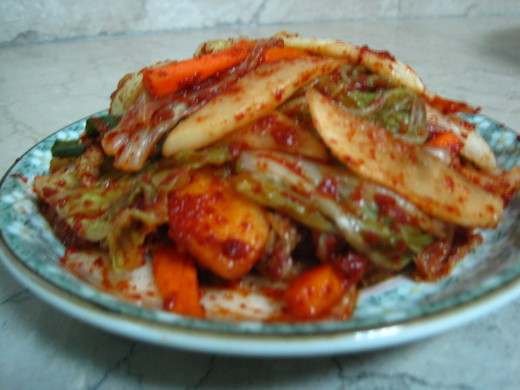 前一堂課的韓國泡菜我可是被引誘的欲罷不休狀態下匆匆離開,過後眼前總是浮現那盤讓人垂涎欲滴泡菜。忍無可忍下只好現學現用的動手做起了泡菜,哈哈!還真是名師出「高徒」,味道還真的不錯,終於解決了我自己的饞勁,更自豪地趕緊貼到facebook(臉書)上招搖炫耀我做的像模像樣的韓國泡菜,不過每次想到烹飪課室裡展示的那盤色香俱全的泡菜,還是會口生津液。