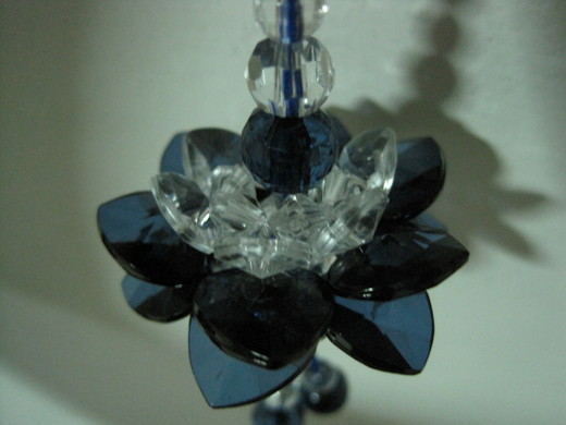 這時課室裏已人頭湧湧在串蓮花,水晶蓮花是用透明的尼龍繩把一粒一粒的水晶串成一朵盛開的蓮花。原來上星期最後一堂課老師已經教了,但這朵蓮花較复雜又有點難度,以至於老師再來一趟慈濟再多教一次。很巧竟然給我撞上了,真是有緣。