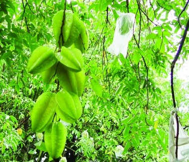這棵老洋桃樹記錄着我很多童年的往事,那時只要無聊或想偷懶,就會爬上洋桃樹,躲在密葉茂盛的枝椏上,觀一粒一粒掛在樹椏上的洋桃,跟它們默默的心靈交談;看洋桃花,它的花没有桃花那麼美麗豔麗,是一小串一小串的小花;洋桃成熟時,它那独特的香味總能讓我駐足。