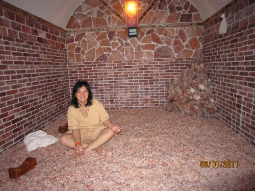首次躺在熱度適中淺黄色石頭上,真的是超舒服,旁邊一位來自台灣的華婦跟我解釋:“她每星期来一次,躺在這些熱的石頭上能去掉身上的濕氣;另一間中藥的熱桑拿室,能讓身上的肌肉變結實。”