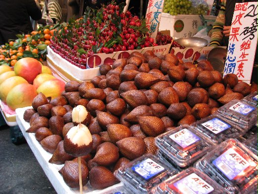 吃飽後我們繼續在太子、旺角附近逛,到旺角的始創中心、新世紀廣場、旺角中心之後,在各大小店舖流連忘返,禁不住折扣的誘惑,也小小地敗家了一下,唉…(謎之音:沒來敗家,別說你來過香港…)。之後我們又逛到了女人街,看到當地販賣的許多奇奇怪怪的東西,蛇皮果我是第一次看到,台灣蓮霧好紅喔,不過形狀好像變細長了耶!