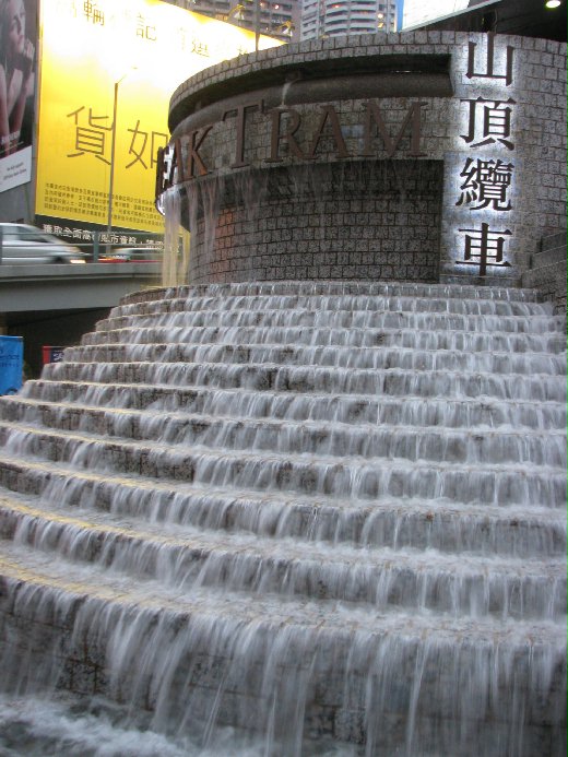 其實我只知道要到中環,但還不太曉得到中環要做什麼。這樣任憑擺布的好處是,對於後來會看到什麼沒有任何概念,沿路所見處處是驚喜。例如,滿街跑的彩繪公車及電車、地面上的指示、朱銘的作品,以及只有路過觀賞的聖約翰座堂(教堂)。到了太平山山頂纜車搭乘處,排隊等搭纜車的人真是多啊!在排隊的地方有看到成龍的蠟像,蠻維妙維肖的,原來山頂的凌霄閣內有著名的杜莎夫人蠟像館。