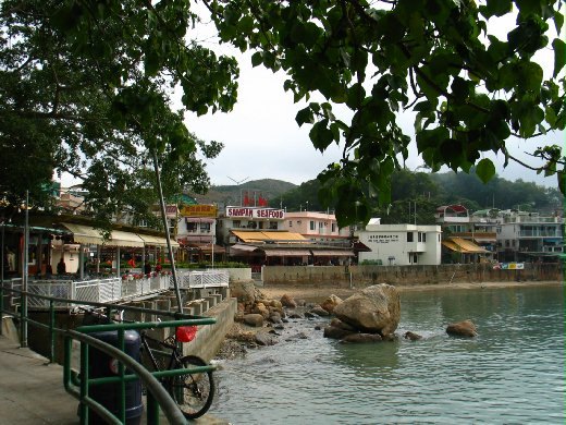 榕樹灣大街,真的是各國的美食大雜燴,什麼樣的店都有。香檳與豬肉可以一起賣的店我倒是第一次看到,還有旅遊書上介紹的南島書蟲、帶著狗在路邊就擺起攤賣書的外國人、穿梭其中的小型農用車、天后古廟、醫院、動物保護組織領養中心…等,展現了與香港本島完全不同的小鎮風光。