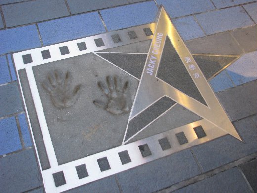 沿著星光大道一路走下來,我們在地上看到了許多香港名人打上的手印,一邊看有那些名人、一邊看他們手印的大小。後來發現了張學友的手印,也不能免俗地在手印上壓上自己的手,覺得張學友的手怎麼這麼小,跟我的手差不多耶!