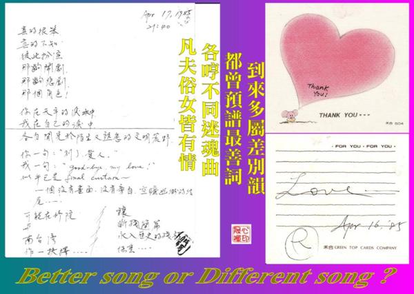 凡夫俗女皆有情,各哼不同迷魂曲; 都曾預譜最善辭,到來多屬差別韻......