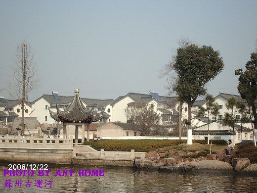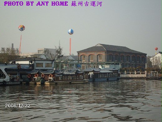 蘇州市政府規劃的非常完整,在小河區沿岸舊建築物依然存在,整建也必須維持原貌 ; 來到大河區,沿岸所有新建築物統一造型,仿傚古式黑瓦白牆江南建築風格,連稍遠處商業廣告的空飄大汽球都還是大紅燈籠式樣。更遠的現代化高樓大廈林立,包括我們住宿的假日飯店,我站立船上欣賞著蘇州的過去與現代,融合在我相機鏡頭裡,沒有人講話,大家都靜靜地享受美景。