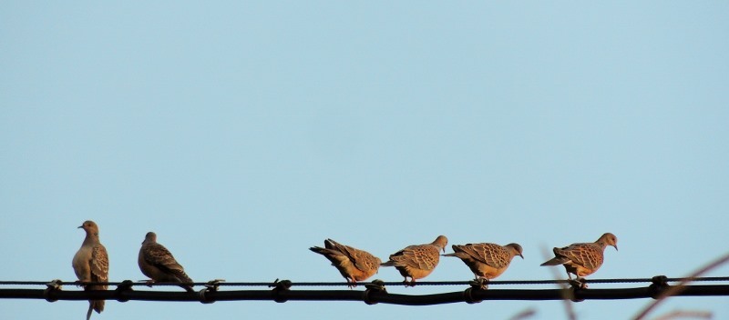 電線上排隊合唱的珠頸斑鳩。 ↓↓↓