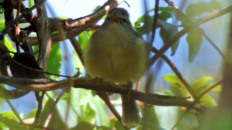 栗背林鴝-母,全身為橄欖色,腹羽黃色。 ↓↓↓