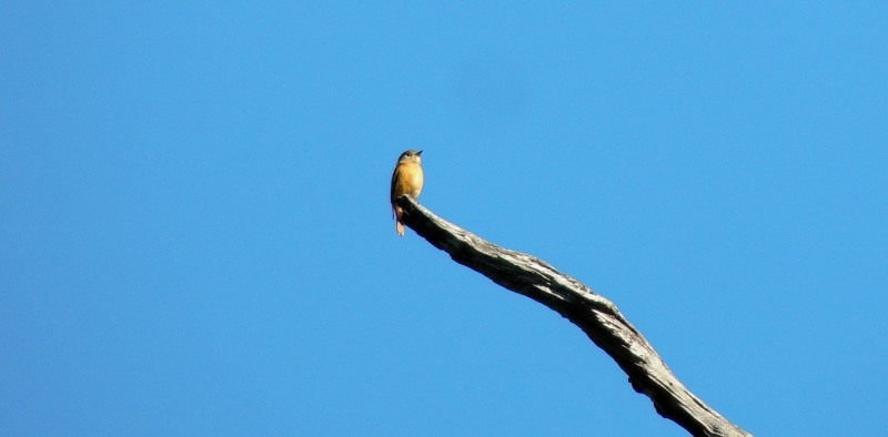 茶腹鳲就在高大的夫妻樹上面漫步,有練過的特技,在高高的夫妻樹往下走。失敗的作品卻有網友安慰:「逆光的剪影,很有特色。」 ↓↓↓